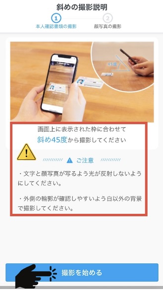 本人確認書類の撮影をしたあとに顔写真の撮影になります。
