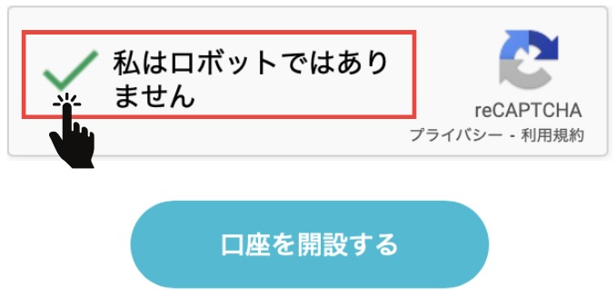 ③私はロボットではありませんの枠にチェックマークを入れる。