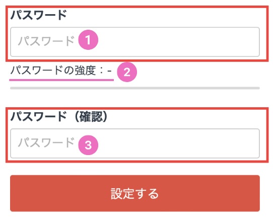 ③は①で入力したパスワードを確認のためもう1度入力します。