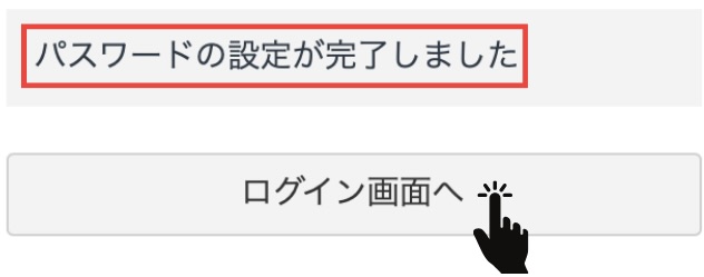 下画像赤枠内のように完了画面になりましたらパスワード設定が完了しているので、パスワードは忘れないようにしっかり保管しておきましょう。